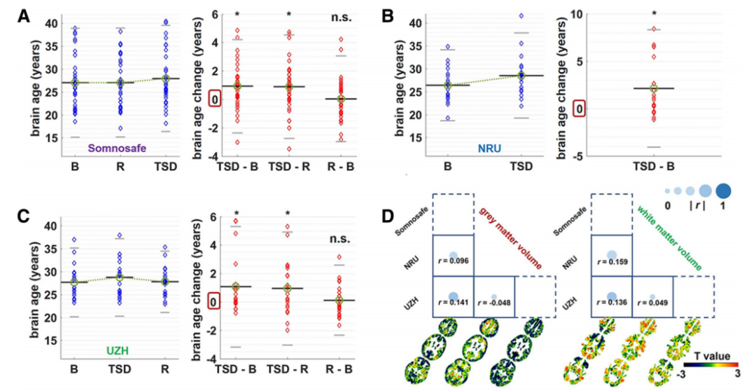 针对这些未解答的问题,来自德国于利希研究中心、丹麦哥本哈根大学医院等的研究人员通过实验性睡眠剥夺(SD,一种可变的控制方法来操纵睡眠条件)以及“大脑年龄预测”法,来研究急性睡眠剥夺对大脑结构的即时和恢复后影响,明确人类衰老与睡眠持续时间减少/睡眠中断增加之间的关联性。