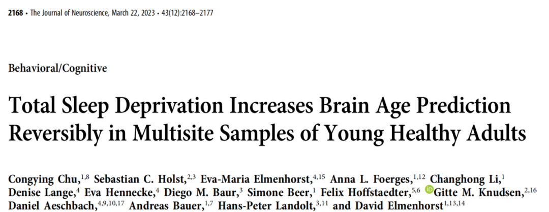 [1]Chu C, Holst SC, Elmenhorst EM, et al. Total Sleep Deprivation Increases Brain Age Prediction Reversibly in Multisite Samples of Young Healthy Adults. J Neurosci. 2023;43(12):2168-2177. doi:10.1523/JNEUROSCI.0790-22.2023