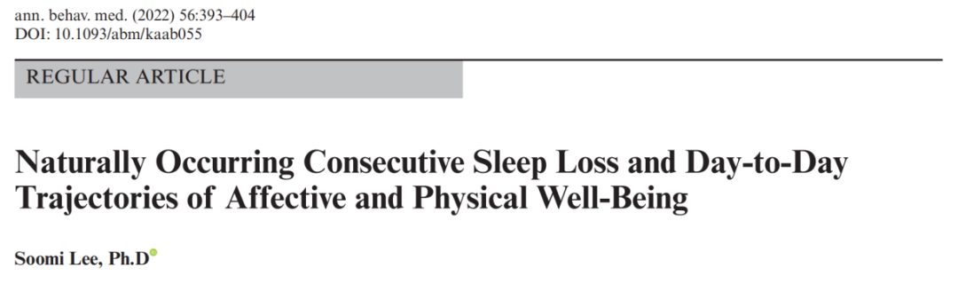 [2]Lee S. Naturally Occurring Consecutive Sleep Loss and Day-to-Day Trajectories of Affective and Physical Well-Being. Ann Behav Med. 2022;56(4):393-404. doi:10.1093/abm/kaab055
