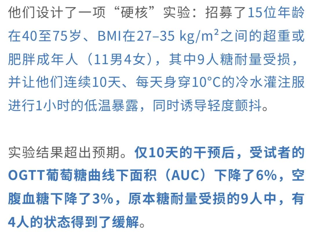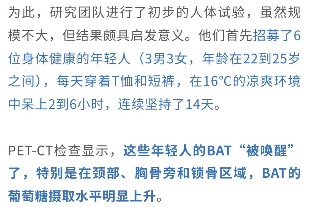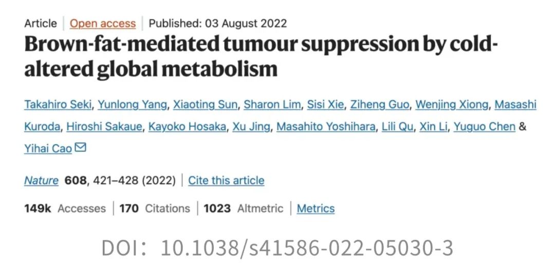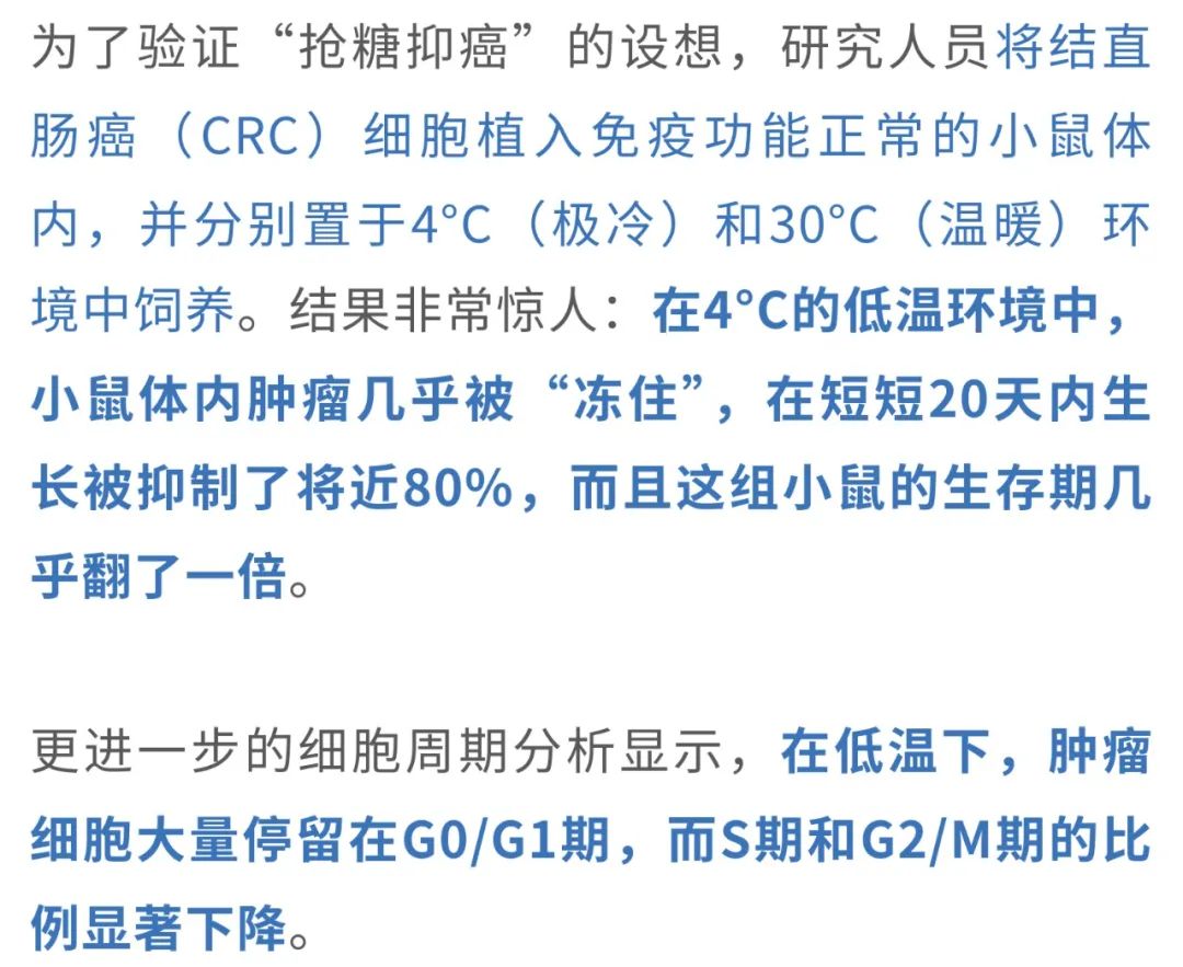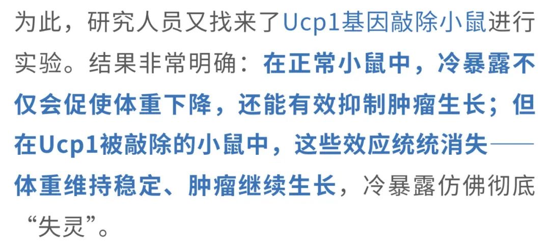 夏天的命,一半靠冰西瓜续着,一半靠空调吊着。前者是天然清甜的慰藉,后者是人类智慧的结晶——在三十几度的高温里,一口冰西瓜能让人从口腔凉到心底,而一阵冷气吹来,仿佛全身的火气、闷气、坏脾气都被一键清空。在这样的酷暑中,空调不仅让人“活下来”,更像是身体和情绪的“降温阀门”。 但冷空调这股凉意带来的,可能不只是主观上的清爽——来自瑞典卡罗林斯卡学院的华人科学家曹义海教授团队发表于Nature的一项研究[1]发现:低温环境还能激活我们体内的“自带燃脂引擎”——棕色脂肪组织(BAT),让它主动燃烧能量、产热,并吞噬血液中的葡萄糖。而且,这一行为竟然会和癌细胞“抢糖”!结果就是:肿瘤细胞“抢不到糖”,能源告急,生长受限。在患癌小鼠中,冷环境显著延缓了肿瘤进展,延长了生存时间;在人类试验中,仅仅将环境温度调低到22℃,也观察到了同样积极的抑癌信号。 冻一冻, 癌细胞就“蹦跶”不起来了? 提起癌症,许多人首先想到的是“基因突变”或“细胞无限增殖”。但其实,从代谢的角度来看,癌症同样是一种严重的能量调控紊乱。尤其是实体瘤,它们在生长过程中对葡萄糖的依赖极强——即使在氧气充足的环境中,也依旧选择低效但快速的“糖酵解”来供能,这种现象被称为Warburg效应。 那么,既然癌细胞“嗜糖如命”,如果能从体内的糖供应端“截胡”,是否就能从源头遏制它们的生长?带着这个思路,研究人员把目光投向了一个能“吞糖”的天然组织——BAT。在低温环境下,BAT被激活,启动以线粒体解偶联蛋白1(UCP1)为代表的非颤抖产热机制,快速消耗葡萄糖用于保温产热。也就是说,BAT一旦被“唤醒”,就会变身为体内“抢糖能手”。 这意味着,癌细胞几乎被“锁”在静止阶段,失去了活跃分裂的能力,就像进入了“待机模式”。 值得一提的是,这种现象并非只在CRC模型中出现。在纤维肉瘤、乳腺癌、黑色素瘤、胰腺癌等多种肿瘤模型中,低温暴露同样表现出显著的抑癌效果。 那么,这些组织的“高能耗”是否真的会影响肿瘤赖以生存的葡萄糖供应? 这说明冷暴露下BAT“截胡”了葡萄糖资源,导致肿瘤“无糖可用”。 BAT或UCP1“罢工”, 冷抑癌体系也跟着“崩”了 此前的研究已经表明,冷暴露能够激活BAT,显著提升身体的产热代谢水平。但问题是,这种代谢上的变化,是否真的能够转化为对肿瘤生长的有效抑制?为此,研究人员展开了进一步验证。 实验显示,在低温环境下,小鼠的整体代谢率明显提高。 换句话说,低温让机体“抢糖”的能力增强了,而对于依赖高糖代谢生长的肿瘤细胞来说,这无疑是一次釜底抽薪。 那么这些被“抢走”的葡萄糖究竟去了哪里?是否都被BAT“抢”走了?为了验证这一点,研究人员将小鼠体内的BAT切除,看看没有BAT的情况下,冷暴露是否还能继续“冻住”肿瘤。 结果十分直观:一旦BAT被切除,小鼠在4°C环境下的血糖水平迅速回升,说明BAT的确是冷暴露下最主要的“吃糖大户”。更关键的是,那些原本在低温中被显著抑制的肿瘤,此时也像是被“解冻”了一样重新开始增长,冷暴露的抗肿瘤效果随之消失。而对照组中,在30°C环境下切除BAT,对肿瘤生长并没有明显影响。这一对比结果进一步强调了:冷暴露下BAT的活化,是其实现抑癌效应的关键。 当然,BAT之所以能够产热、吞糖,离不开其中一个核心角色——UCP1。它是非颤抖产热的“启动器”,能将线粒体产生的能量直接转化为热量,而不是用来合成ATP。那么如果这个“能量熔炉”的开关坏掉了呢?冷暴露的抑癌效应还是否成立? 这说明,UCP1是连接低温、BAT产热与抑癌效应之间的关键纽带。一旦缺失,哪怕身处冰冷环境,BAT也无法吞糖产热,肿瘤就会重新获得生长所需的“燃料”,冷暴露抑癌的效应也就随之崩塌。 “温柔版冻癌术”, 或许也可行 最后,大家最关心的问题来了:这样“冻肿瘤”的方法,真的能用在人身上吗? 虽然每个人BAT激活的程度略有差异,但至少说明一点:只要温度够低,即便是成年人的BAT也能“点火启动”,而且16℃也许就能达到效果(比起小鼠实验用到的4℃,已经人性化太多了)。 总的来说,这项研究提示,低温暴露并非简单的“物理降温”,而是通过激活BAT、重塑葡萄糖代谢格局,从而系统性地干预肿瘤的代谢需求和TME构成,最终实现广谱性的抑癌效果。即便是在一个多数人都能轻松忍受的温度(比如22℃),我们体内的BAT依然有可能被激活,开始大量“吞糖”,从而和肿瘤争夺营养,切断它的能量供给。这种思路下的“低温疗法”,为癌症治疗提供了一个前所未有的方向。 “冻一冻”不只是发抖, 还能改善代谢和心血管健康 不过,寒冷的“魔法”可不仅仅是让癌细胞抢不到糖、被活活“饿死”这么简单。研究人员将目光转向了更广泛的层面:寒冷是否还能对我们整体的代谢和心血管健康产生影响? 来自荷兰马斯特里赫特大学的研究团队发表在Nature Metabolism的一项研究[2],给出了令人振奋的答案。研究发现,这种看似“冻一冻”的干预方式,不仅能改善口服葡萄糖耐量(OGTT)和空腹血糖水平,还能显著降低甘油三酯(TG)和游离脂肪酸(NEFA)浓度,连收缩压和舒张压也同步下降,展现出寒冷对多重代谢指标和心血管健康的积极调节作用。 其实,这一发现并非空穴来风。此前就有研究指出,寒冷适应有助于提升2型糖尿病患者的胰岛素敏感性。不过,随后的研究却发