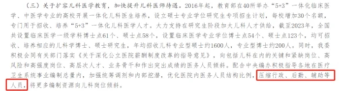 有人觉得这是空穴来风,其实不然。早在9月5日,国家卫生健康委发布的《关于政协第十四届全国委员会第二次会议第04426号(医疗卫生类380号)提案答复的函》中就提到了“优化医院内医务人员结构比例,压缩行政、后勤、辅助等人员”。