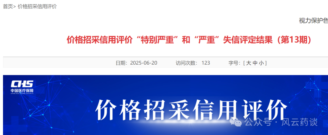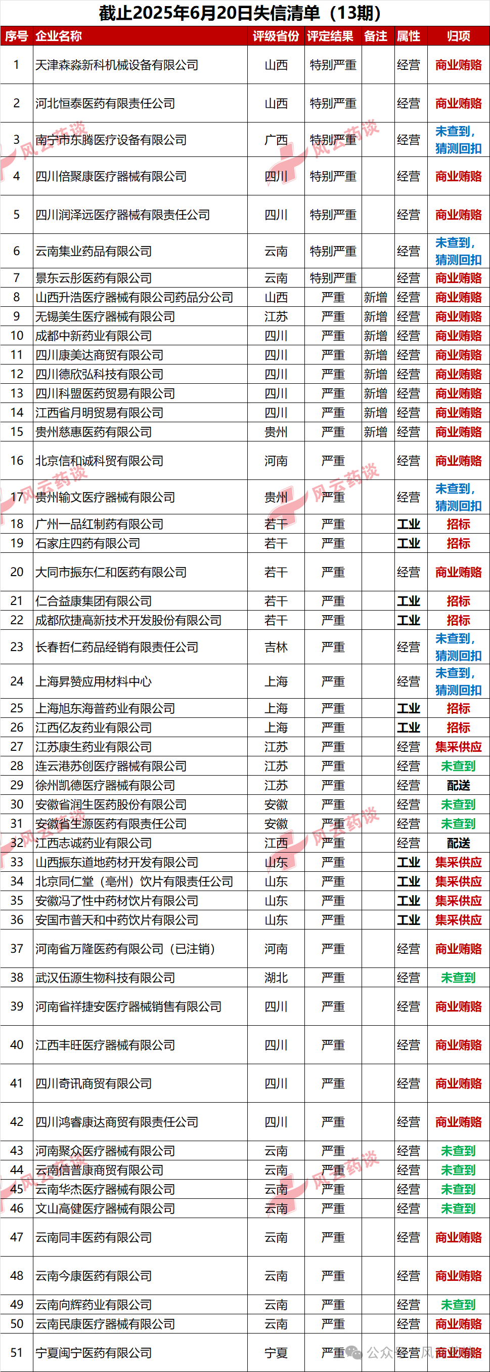 注1:《医药价格和招采信用评价的操作规范(2025版)》自2025年第三季度起执行,本次失信等级仍按2020版评定。