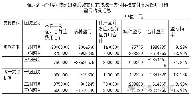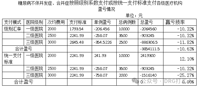 还是按上面糖尿病两类病组的举例来论述在级别付费的冲击下,将导致权重谈判基础的崩塌和对基层医疗机构冲击将是毁灭性的。