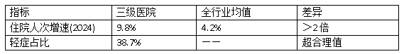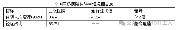 2.资源配置扭曲:加剧三级医院虹吸效应,导致病源无序流动,基层医疗机构收治入院指征不足病人,推高全国住院率。