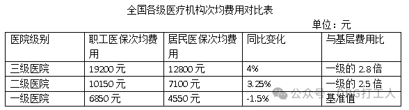 三级vs 一级:职工医保次均费用差达12,350元(19,200 - 6,850),但DRG权重测算已包含此成本差异;级别系数支付二次放大:
