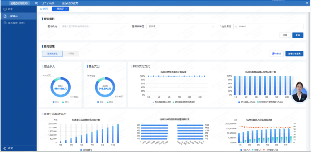 杭州市医保数据定向发布模块设置有经办端和两定机构端。经办端负责数据版本管理、自动采集、人工复核、审核发布,实现医保数据定向发布的全流程线上闭环。两定机构端实现“一屏总览”地区及本机构关键指标,医保数据发布清单、总额预算情况、DRG情况、定点医药机构情况等明细数据一键下载,“AI解读”深度分析随时调用。医保数据定向发布模块上线以来,多家医疗机构负责人表示:“数据一目了然,成本管控更有底,支付方式改革心里更有数!”下一步,杭州市医保局将依托全国统一医保信息平台,持续丰富数据发布形式、完善指标体系、强化安全管控,让“数据多跑路、机构少跑腿”。