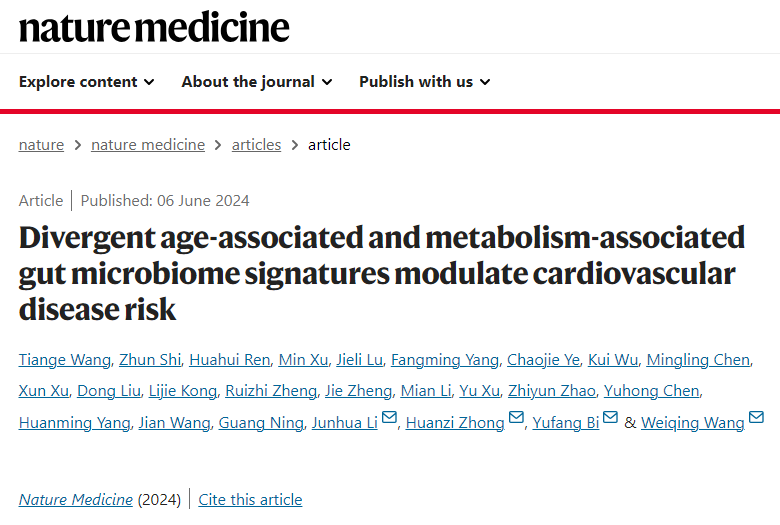 近日,上海交通大学医学院附属瑞金医院国家代谢性疾病临床医学研究中心、上海市内分泌代谢病研究所王卫庆教授、毕宇芳教授团队与华大生命科学研究院、华大基因智惠医学研究院在《自然-医学》(Nature Medicine)杂志上发表论文,首次提出“肠道菌龄”的概念,认为肠道菌群是决定我们人体年龄的重要因素,这个年龄并不以人的生理年龄为标准。也就是说,拥有健康肠道菌群的老年人也会更“年轻”,不健康的肠道菌群让年轻人更“衰老”!