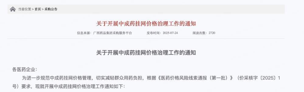 [2]多个知名品种被点名!中成药挂网价格治理风暴来袭