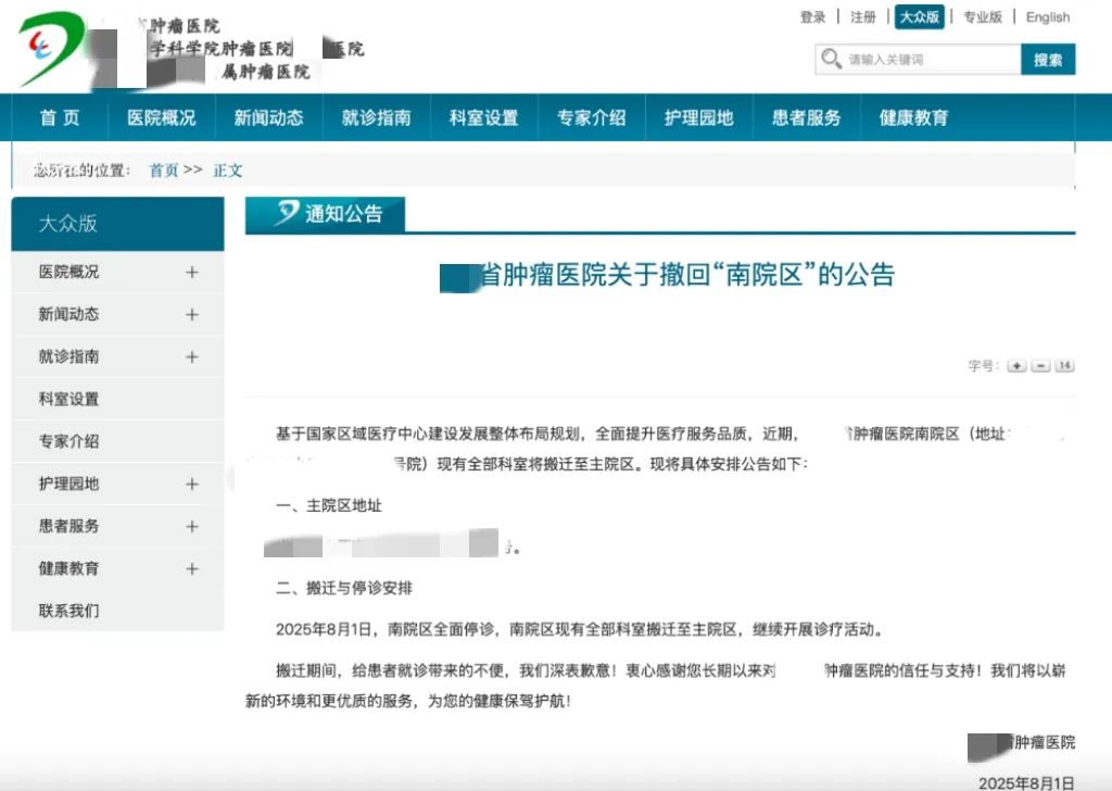 具体安排公告显示,2025年8月1日,南院区全面停诊,南院区现有全部科室搬迁至主院区,继续开展诊疗活动。