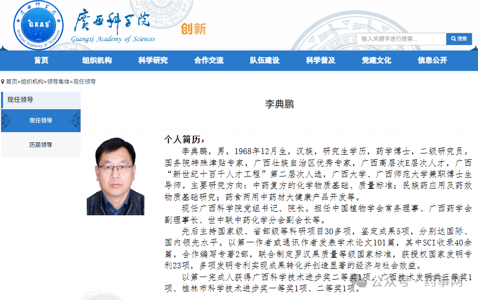 2025年8月4日,广西科学院官网最新消息显示,李典鹏已任广西科学院党组书记、院长。