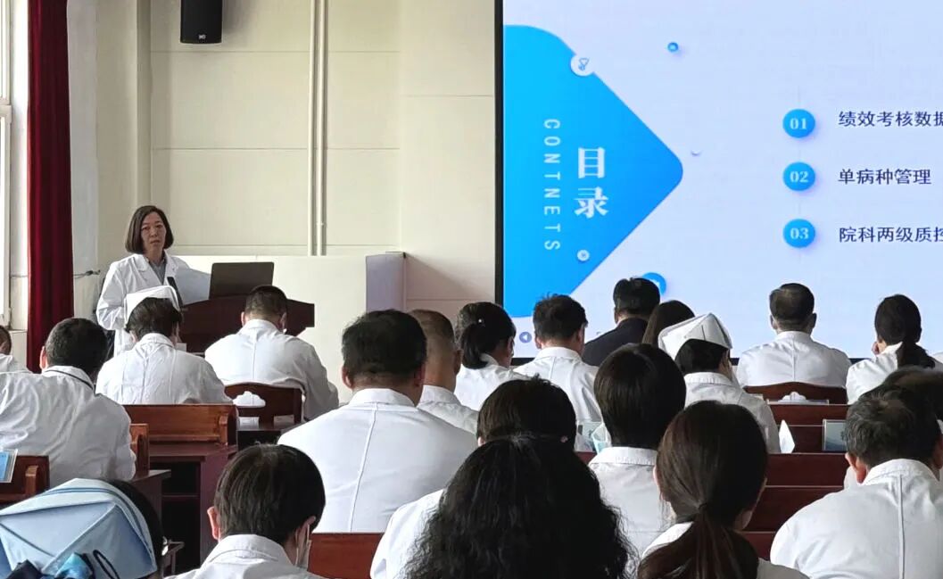 质控办主任李茹对绩效考核数据分析、单病种管理、院科两级三层管理进行汇报。