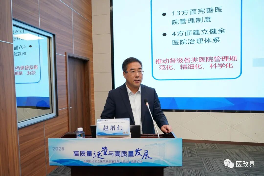 河北省医科大学第一医院党委书记赵增仁围绕《建设精致医院 助力高质量发展》主题,从“规模要适度、学科有特色、管理精细化、运营有效率、医院有文化”五个方面,将精致医院建设理念与公立医院运营管理、高质量发展高度融合,分享了河北医大一院成功经验和做法。
