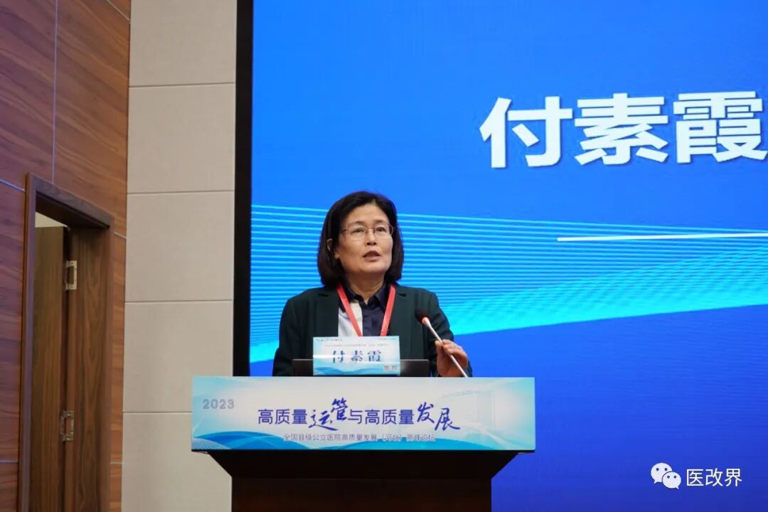 付素霞在致辞中表示:要结合国家和省市医改政策,结合当前县级公立医院改革面临问题,加强医共体建设,提高县级医院服务能力,加强专科学科建设,提高群众获得感,提高患者和医护人员满意,促进县级公立医院高质量发展等,讲了非常重要的意见。