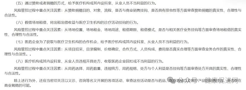 《指引》详细列出了8项可能涉嫌商业贿赂,医药企业和医疗卫生机构需要密切关注的行为,并提示了风险管控过程中重点关注因素。