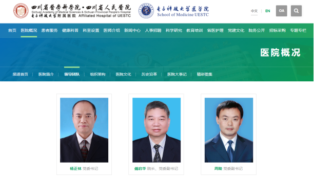 据四川省医学科学院·四川省人民医院官网消息,杨正林现任四川省医学科学院·四川省人民医院党委书记,傅启华任四川省医学科学院·四川省人民医院院长。 11月9日,四川省人民政府发布通知,任命傅启华为四川省医学科学院·四川省人民医院院长(试用期一年)。免去杨正林的四川省医学科学院·四川省人民医院院长职务。 公开信息显示,杨正林,1966年6月出生于四川省邛崃市, 现任四川省医学科学院(四川省人民医院)党委书记。1989年7月,杨正林在重庆医科大学获学士学位,1999年7月在华西医科大学获硕士学位硕士。2000年8月,他在美国克利夫兰临床医院从事博士后研究工作,并于2009年7月在西南大学获博士学位。自2008年6月起,杨正林任四川省人民医院院长助理,2012年6月开始担任任四川省人民医院副院长。2020年12月—2025年11月,任四川省医学科学院·四川省人民医院院长。 公开信息显示,傅启华,男,1967年2月出生,浙江兰溪人,医学博士,教授、博士生导师。他于1985年毕业于浙江省金华卫生学校检验专业,1994年和2004年分别获上海第二医科大学临床检验与诊断学专业硕士、医学博士学位。 在此期间,他曾先后任浙江省邮电医院检验科技师、浙江医科大学附属第一医院输血科技师、浙江省血液中心输血研究室主任及输血研究所副所长。 2005年,傅启华赴美国圣母大学(University of Notre Dame)从事博士后研究,2008年进入上海交通大学附属上海儿童医学中心,历任实验诊断中心主任、科研部主任,2019年起任该中心党委委员、副院长。2023年10月任四川省医学科学院·四川省人民医院党委常委、副院长。 他主持国家自然科学基金项目8项,发起“中国儿童先天性心脏病基因组研究计划”,在《Science Bulletin》《Genetics in Medicine》等期刊以通讯作者(含共同)发表SCI论文60余篇,主编学术著作2部,获国家科技进步奖二等奖等各类科技成果奖10余项。 官网介绍,四川省医学科学院·四川省人民医院,始建于1941年,前身“四川省公立医院”是原国立中央大学医学院附属医院,1952年命名为四川省人民医院,1989年评为首批国家三级甲等医院, 2002年与四川省医学科学院(前身为中国医学科学院四川分院)合并,成为四川省医学科学院·四川省人民医院。2013年,四川省人民医院与电子科技大学合作共建医学院,成为电子科技大学附属医院。 近年来,医院学科建设及综合影响力不断提升,国家三级公立医院绩效考核排名A+,中国医院科技量值榜单位居全国第67位,成为全国进步最快的医院之一。 医院现有开放床位4500张、诊疗院区及教学科研单元多个,包括青羊院区(院本部、四川省老年医学中心、四川省皮肤病医院/皮肤病性病研究所),温江院区(四川省精神医学中心、温江科研基地),龙泉院区(东院),高新院区(中和、简阳科研平台/药物创新与转化研究中心、实验动物研究所),电子科技大学医学院(共建),成都铁路卫生学校,形成了以院本部为主体、集临床医疗、保健医疗、教学、科研为一体的发展格局。 来 源 / 中国医院院长