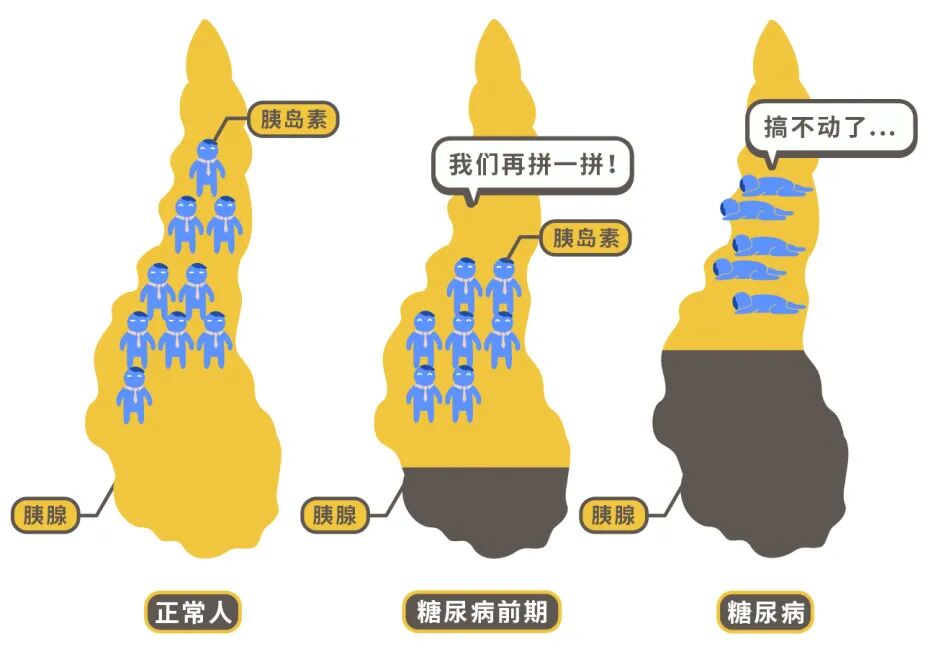 糖尿病本质是胰岛功能受损,这并不是一朝一夕的事,而是缓慢发展的过程。当发展到糖尿病,相当于胰岛功能已经损坏到无法逆转的地步。