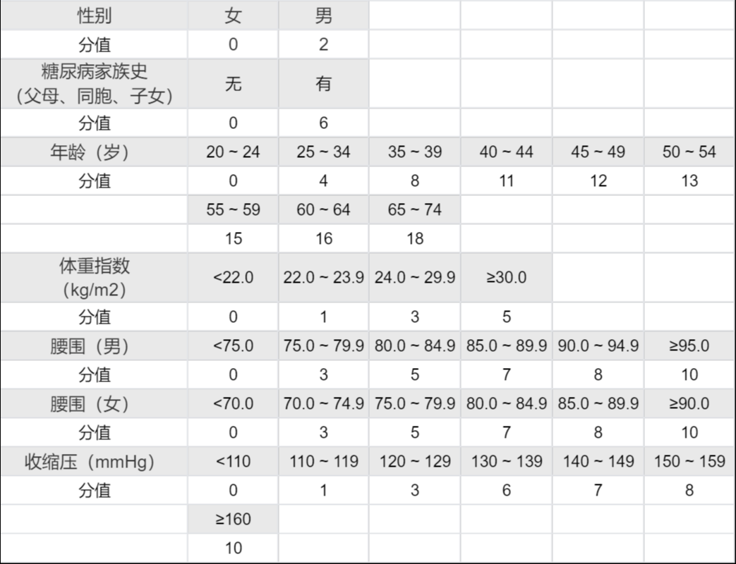 如果你还没有过 35 岁,那么可以对照以下表格,如果得分超过 25 分,那么请你也一定在每年的体检中增加血糖检测。