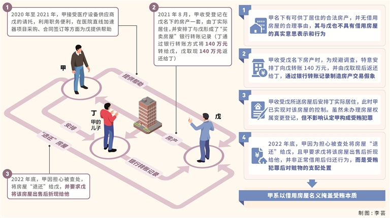 6月25日,中纪委在《三堂会审丨借用房屋还是受贿》一文中,解读了A市(直辖市)B区某医院院长、党委书记甲被以犯受贿罪,终审判处有期徒刑11年,并处罚金150万元一案。 基本案情 甲,曾任A市(直辖市)B区某医院(国有事业单位)副院长、院长、党委书记等职。 违反组织纪律。2021年1月,甲接受下属乙的请托,承诺帮助乙女儿丙调到某医院工作,并收受乙所送现金1万元。甲最终未能办成此事,也未将该1万元退还。之后,基于此前收受乙1万元,甲又接受乙请托,利用职权帮助乙成功评聘副高级职称。需要指出的是,该起事实中,甲承诺帮助乙女儿调动工作及帮助乙成功评聘副高级职称违反组织纪律同时,其收受乙所送1万元还构成受贿。 受贿罪。2014年至2024年,甲在担任A市B区某医院副院长、院长、党委书记期间,利用分管设备、药品和耗材采购、主持医院全面工作等职务上的便利,在药品、医疗设备采购和工程项目承包等方面为他人提供帮助,先后收受多名下属和医院供货商所送财物折合共计475万余元。 其中,包括前文所述:2021年1月,甲接受乙的请托,承诺帮助乙女儿调到某医院工作,并收受乙所送现金1万元,甲未办成此事。之后,甲又接受乙的请托,利用职权帮助乙成功评聘副高级职称。 2020年至2021年,甲接受医疗设备供应商戊的请托,利用职务便利,在医院直线加速器项目采购、合同签订等方面为戊提供帮助,2021年8月,甲收受登记在戊名下的房产一套,由甲的儿子丁实际居住,并安排丁与戊形成了“买卖房屋”的银行转账记录(丁通过银行转账方式将140万元转给戊,戊取现140万元返还给丁)。 2022年底,甲因担心被查处,将房屋“退还”给戊,并要求戊将该房屋出售后折现给他。2023年9月,戊在甲不知情的情况下,将该房产变更登记至妻子名下,又于2024年5月将该房产抵押给银行贷款200万元,该房产至案发时一直未能出售。经鉴定,上述房产2021年8月市场价值为136.28万元,案发时市场价值为105.77万元。 查处过程 【立案审查调查】2024年5月10日,A市B区纪委监委对甲涉嫌严重违纪违法问题立案审查调查。同年5月13日,经A市监委批准,对甲采取留置措施。 【党纪政务处分】2024年8月7日,经B区纪委常委会会议研究,决定给予甲开除党籍处分。2024年10月18日,B区监委给予甲开除公职处分。 【移送审查起诉】2024年8月12日,B区监委将甲涉嫌受贿罪一案移送B区人民检察院审查起诉。 【提起公诉】2024年9月18日,B区人民检察院以甲涉嫌受贿罪向B区人民法院提起公诉。 【一审判决】2025年3月28日,B区人民法院以甲犯受贿罪,判处有期徒刑十一年,并处罚金一百五十万元。甲不服,提出上诉。 【二审裁定】二审审理中,甲表示服从原判,自愿申请撤回上诉。2025年4月24日,A市第三中级人民法院裁定准许甲撤回上诉。一审判决生效。 本案中,2021年,甲承诺帮助下属乙的女儿调到某医院工作,并收受乙所送1万元,甲未办成此事,之后基于此又帮助乙成功评聘副高级职称,上述行为怎样认定?甲安排其子丁居住戊名下房屋后又“退还”的行为如何定性?有意见认为,甲收受戊房屋后“退还”属于犯罪中止或犯罪未遂,如何看待该意见?特邀有关单位工作人员予以解析。 特邀嘉宾 毛云峰:重庆市涪陵区纪委监委第七纪检监察室主任 姚翔:重庆市涪陵区纪委监委案件审理室副主任 周家富:重庆市涪陵区人民检察院检察二部主任 钟华:重庆市涪陵区人民法院刑事审判庭副庭长 2021年,甲承诺帮助乙女儿调到某医院工作,并收受乙所送1万元,甲未办成此事,之后基于此又帮助乙成功评聘副高级职称,上述行为怎样认定? 毛云峰:根据最高人民法院《全国法院审理经济犯罪案件工作座谈会纪要》规定,为他人谋取利益包括承诺、实施和实现三个阶段的行为。只要具有其中一个阶段的行为,如国家工作人员收受他人财物时,根据他人提出的具体请托事项,承诺为他人谋取利益的,就具备了为他人谋取利益的要件。明知他人有具体请托事项而收受其财物的,视为承诺为他人谋取利益。 本案中,甲接受乙请托,承诺帮助其女儿调到某医院工作,并收受乙所送1万元。虽然甲未办成此事,但已承诺为他人谋取利益,并收受财物。之后,甲基于此前收受乙所送1万元,又帮助乙成功评聘副高级职称,甲的上述行为侵害了国家工作人员职务行为的廉洁性和不可收买性,系典型的受贿行为。根据“两高”《关于办理贪污贿赂刑事案件适用法律若干问题的解释》规定,“对多次受贿未经处理的,累计计算受贿数额”。“未经处理”既包括达到定罪标准的未经处理,也包括未达到定罪标准的未经处理。如果行为人多次收受多人小额贿款,虽然每次均未达到受贿罪的追诉标准,但多次累计后达到定罪标准的,也应当依法定罪处罚。本案中,甲利用职务便利为他人谋利,多次收受财物共计475万余元,早已超过受贿罪的追诉标准,故甲收受乙所送现金1万元应计入其受贿数额。 姚翔:甲构成违反组织纪律。根据2018年《中国共产党纪律处分条例》第七十七条规定,在干部、职工的录用、考核、职务晋升、职称评定和征兵、安置复转军人等工作中,隐瞒、歪曲事实真相,或者利用职权或者职务上的影响违反有关规定为本人或者其他人谋取利益的,给予警告或者严重警告处分;情节较重的,给予撤销党内职务或者留党察看处分;情节严重的,给予开除党籍处分。 违法必先破纪,在干部