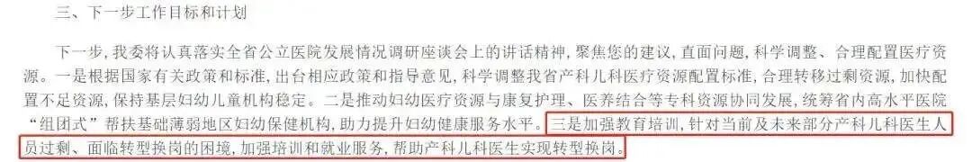 事实上,整合妇科、产科、儿科资源并精简医护人员,已逐渐成为多省共识。此前,湖南省卫健委在答复省政协提案时便明确提及一个严峻现实:当前及未来部分产科、儿科医生面临人员过剩与转型换岗困境,需通过强化培训和就业帮扶,助力这些医生完成岗位转换。
