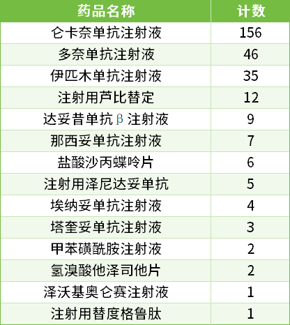 仑卡奈单抗注射液以156家机构纳入量稳居首位,远超其他品种;同为阿尔茨海默病治疗药物的多奈单抗注射液以46家机构纳入量位居第二。此外,伊匹木单抗注射液、注射用芦比替定分别以35家、12家的数量分列三、四位,其余10种药品纳入机构数均不足10家。