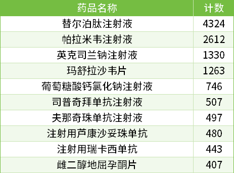 (纳入定点医药机构数量排名前十的药品)