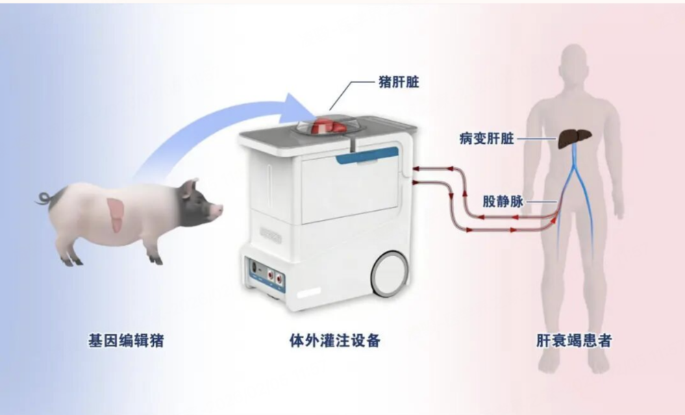 参与此次治疗研究的中山大学第一附属医院何晓顺教授对“医学界”说:“此次异种猪体外肝的成功尝试,意味着在肝衰竭的临床治疗中有了更多选择。”据西京医院报道,团队此次救治的是一名慢加急性肝衰竭患者。猪肝来源于一只6基因编辑猪,由潘登科教授团队培育,他们通过基因编辑等技术,使猪肝与人体具有更高的生物相容性。手术过程中,医生团队将猪肝和中山大学第一附属医院何晓顺、郭志勇教授团队提供支持的常温机械灌注设备连接,再并入患者循环系统,组成了一套异种猪肝脏与体外肝脏的交叉循环系统。由于患者本身处于肝衰竭状态,体外的猪肝暂时承担人体的解毒、合成与代谢功能,而患者自身病肝则保留在原位,构成了“体外辅助生命支持”的模式。西京医院团队介绍,在治疗期间,猪肝灌注、胆汁分泌良好(300-350ml/天),灌注设备运转正常。在持续治疗66小时后,患者胆红素、转氨酶、凝血酶原活动度等主要肝功能指标,得到持续且显著改善。由于患者的治疗效果显著,经严格评估后,团队随即解除了猪肝体外灌注。据报道,截至目前,患者生命体征平稳,生理生化指标趋近正常。西京医院表示,此次技术的核心创新在于实现“三重突破”:包括多重基因编辑策略,创造了目前最精简的“人源化”猪肝脏;桥接治疗理念,用体外肝脏交叉循环系统,提供器官功能的临时支持,大幅降低了体内移植的免疫抑制负担。此外,由何晓顺教授团队开发的闭环灌注技术,还可以精准控制温度、压力、氧合和抗凝,维持离体猪肝脏生理活性。这种组合模式,开创了异种器官应用新模式,无需移除患者自身器官,即可实现功能代偿。可以说,此次治疗研究的成功,标志着猪器官移植在落地常规临床应用的道路上,迈出了里程碑式的一步。2022年起至今,我国和美国在异种移植领域已形成了“双强并跑”格局,多个团队接连完成了猪心、猪肾、猪肝的人体移植。学界的终极目标,是希望在人类供体器官短缺的局面下,让猪器官成为一种标准化的“治疗产品”,与人体终身、健康地共存,挽救患者生命。但问题在于,即便是人和人之间的器官移植也可能发生不同类型的排斥反应,而猪与人之间基因差异更大,异种移植的长期慢性排斥反应,仍是学界面临的一大挑战。潘登科告诉“医学界”:“此前全球开展的猪器官移植,往往是植入患者体内。通过对猪进行基因改造,我们已经解决了超急性排斥和部分急性排斥反应,但较强的排斥反应任然存在。”“这种情况下,通过‘桥接治疗’,让猪器官暂时辅助维持生理功能,帮助患者争取时间,等待器官移植或自身器官功能恢复,成为了异种移植的一大可行、且有望快速落地临床的可行方案。”潘登科说。事实上,早在2024年3月,窦科峰院士团队便成功在保留患者原位肝脏的前提下,将猪肝异位植入一位脑死亡受者体内。这项开创性的工作,为猪肝异位移植辅助治疗,提供了关键的理论与数据支撑。据潘登科介绍,不同于脑死亡患者,若对急性肝衰竭患者进行体内异位移植,待病情好转后再摘除猪肝,患者将承受两次重大手术创伤。而采用猪肝体外灌注技术,则能有效避免这一难题。当然,相比体内移植,体外猪肝也面临着更高的感染、血栓等风险。这正是此次研究中,由何晓顺教授团队研发的体外常温机械灌注设备所成功攻克的核心技术难关。中山大学第一附属医院专家团队调试机械灌注设备/图源:西京医院据了解,这一技术平台由何晓顺率队于2017年全球首次成功研发,能通过重建体外血液循环,模拟人体体温环境,为离体器官(包括猪肝)供血供氧,体外维持肝脏正常生理功能,被《美国移植杂志》评论为“器官移植发展历史上的一个重要里程碑”。“我们研发的‘无缺血技术’,能在移植全过程中保障器官血供不中断,保持正常生理功能,极大延长了器官体外的保存时间,最大程度地保障供体猪肝在体外发挥正常肝脏功能。”何晓顺对“医学界”表示,该技术平台最长能让肝脏在体外存活两周时间。何晓顺介绍:“此次手术中,相比人类肝脏,即使是经过基因改造,猪肝脏仍然面临很多挑战,比如凝血机制、内环境干扰等。为此,我们也将设备进行了相应的调配,以便更适应手术需求。”“最终的效果比我预期得还要好,在治疗的第60小时,总胆红素从268μmol/L 降至80.7μmol/L 。体外猪肝灌注疗效明显,几乎等同于人类肝脏辅助。”何晓顺说。相关统计数据显示,我国有近4亿肝病患者,每年有约20万名患者因急性或慢加急性肝衰竭住院,短期死亡率高,而可供移植的人类肝脏严重不足。潘登科表示,不同于急性心衰患者有ECMO作为过渡治疗、肾衰患者也可以通过透析长期维持生命,急性肝衰患者长期缺乏相对理想的过渡支持手段。因此,将基因编辑猪肝作为短期、可移除的体外生命支持系统,显示出巨大的临床前景。何晓顺同样告诉“医学界”,体外肝支持可以帮助改善患者全身状况,为后续肝移植创造有利条件。“对于如药物性肝衰竭等病情可逆的患者,这一手段也可以帮助自体肝脏自我修复,而无需接受肝移植。此次异种猪体外肝的成功尝试,意味着在肝衰竭的临床治疗中有了更多选择。”何晓顺说。除了“移植本身”,移植器官的选择,也使得此次手术具有里程碑意义。在实施难度上,异种肝移植被认为是器官移植中的“圣杯”,放眼国际也鲜有开展。窦科峰