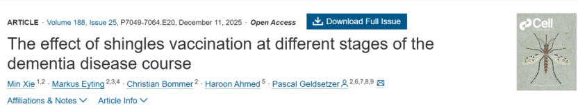 2025年12月11日,《细胞》发布带状疱疹疫苗重磅研究成果,表明其能显著降低轻度认知障碍的发生风险,减缓疾病进程,降低痴呆导致的死亡风险。今年早些时候,《自然》《美国医学会杂志》《自然·医学》等也发布了类似结果。