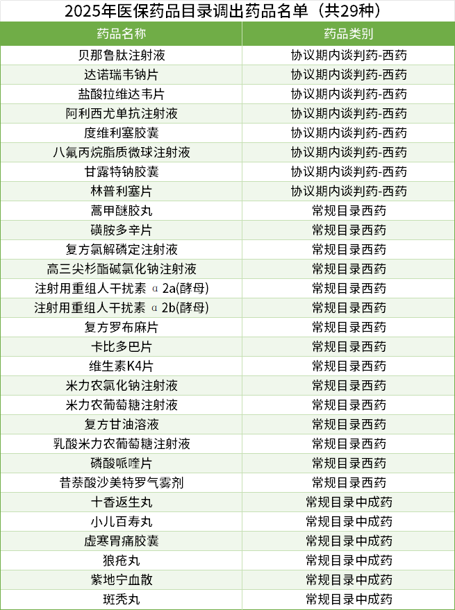 据介绍,2025年医保药品目录新增药品114种,29个药品被调出医保目录,65个药品支付范围有调整。