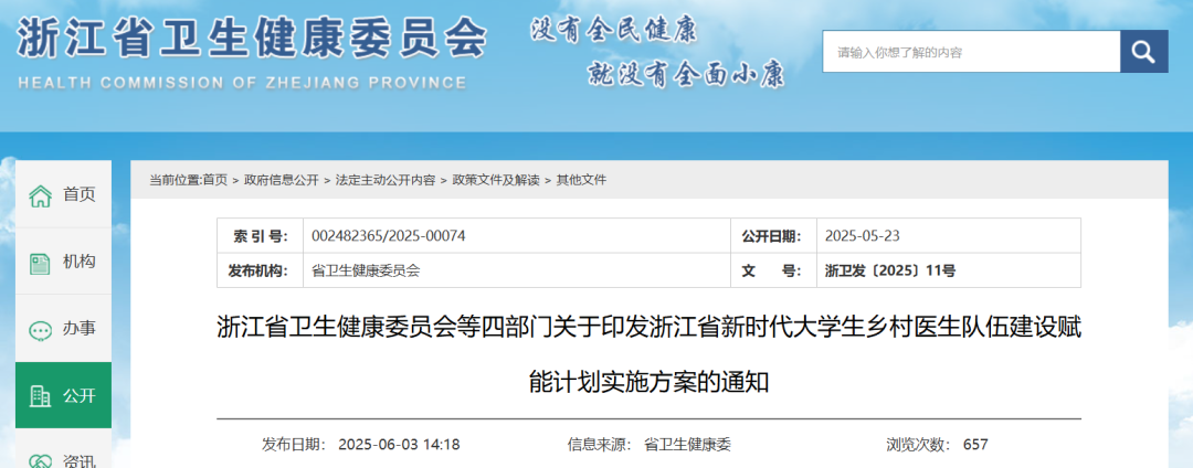 对于在基层医疗卫生机构工作的,中级职称考试通过的可直接聘任,申报基层卫生专业高级职称,在学历、年限等条件上予以放宽,且不受规培要求限制。 6月3日,浙江省卫生健康委、省财政厅等四部门印发《浙江省新时代大学生乡村医生队伍建设赋能计划实施方案》(以下简称《方案》),全面建强浙江新时代大学生乡村医生队伍,明确力争80%以上的大学生乡村医生具备中医服务能力。 图源:浙江省卫健委 《方案》通过优化大学生乡村医生一体化管理机制、建立大学生乡村医生培养体系、完善大学生乡村医生激励保障政策等措施,推动医疗卫生人才“县乡村一体化”管理改革,提升基层服务能力。 《方案》明确对大学生乡村医生在职称晋升上给予政策倾斜。对于在基层医疗卫生机构工作的,中级职称考试通过的可直接聘任,申报基层卫生专业高级职称,在学历、年限等条件上予以放宽,且不受规培要求限制。 优化大学生乡村医生一体化管理机制 《实施方案》提出,优化大学生乡村医生一体化管理机制,进一步优化大学生乡村医生队伍配置和管理方式,在干部选拔、人事安排、岗位聘用、薪酬保障、培养考核等方面探索开展同质化管理,着力形成一支规模适当、相对稳定、水平适宜的新时代大学生乡村医生队伍。 拓宽大学生乡村医生队伍范围,依托“浙医聘”和“医护人员职业生涯一件事”平台,建立大学生乡村医生职业发展档案,对全省大学生乡村医生招聘、培养、管理、评价进行全流程跟踪。 畅通大学生乡村医生职业上升通道。鼓励将大学生乡村医生纳入医疗卫生人才“县乡村一体化”管理,以全员岗位管理促进职业发展,对通过大学生乡村医生专项计划、定向培育等途径进入大学生乡村医生岗位的,在达到最低服务年限要求后,可参与县域医共体内岗位竞聘,同等条件下可优先聘用到乡镇卫生院、县级医院岗位工作。新招录大学生乡村医生在参加赋能计划并取得合格证书后,可不再参加乡村医生执业注册培训。 建立大学生乡村医生培养体系 《实施方案》提出,建立大学生乡村医生培养体系。加强执业医师资格考试培训,通过执业医师考试培训、持续辅导、动态评估的跟踪式培养,力争执业(助理)医师资格考试通过率达到90%。 加强“西学中”中医培养,针对非中医类大学生乡村医生,入职后同步开展线上“西学中”理论学习和线下中医药实践培训;针对中医类大学生乡村医生,加强中医诊断学及针灸、推拿、中药等中医药适宜技术培训。加强临床技术能力和全科能力培训,开展基于人工智能临床决策训练系统的“虚实融合”式全科门诊接诊模拟教学,提高大学生乡村医生常见疾病诊治、重大慢性病防治、急诊急救等能力。 加强大学生乡村医生进修带教。开展大学生乡村医生常态化培训提能,在医共体内建立大学生乡村医生导师制度,为每名大学生乡村医生配备1位副高以上的指导老师,做好临床实践带教指导,将指导老师带教工作实际成效纳入下基层服务和职称岗位考核依据。在大学生乡村医生取得执业医师资格证书后,择优推荐参加“万医进修”行动,3年内到上级医疗卫生机构开展不少于1个月的进修培训。 完善大学生乡村医生激励保障政策 《实施方案》要求,完善大学生乡村医生激励保障政策。 在落实编制保障方面,医共体通过定向培养招录大学生乡村医生,应在核定的编制限额内进行;空编不足、确有困难的,可适当通过周转编制方式予以支持,具体由各地根据近年内自然减员等实际把握。有条件的医共体拿出一定数量的岗位,按规定公开招聘优秀大学生乡村医生。 在提升待遇保障方面,落实“两个允许”要求,各地结合实际合理核定基层医疗卫生机构绩效工资水平,可按规定设立山区、海岛等地区工作补助项目,加强服务艰苦偏远地区的大学生乡村医生待遇保障,医共体内部分配向基层岗位倾斜。 在加大专项支持方面,加强大学生乡村医生培养,支持浙江省大学生村医赋能基地建设,统筹各类培训资源,完善线上与线下相结合、理论与实践相结合的培养体系,着力提升大学生乡村医生执医能力、中医药能力、临床诊疗能力,每年依托基地培养不少于100名。通过各项培训考核的,可按相关规定申请继续医学教育学分。 在倾斜职称政策方面,对大学生乡村医生在职称晋升上给予政策倾斜。对于在基层医疗卫生机构工作的,中级职称考试通过的可直接聘任,申报基层卫生专业高级职称,在学历、年限等条件上予以放宽,且不受规培要求限制。 大学专科学历毕业,在乡村医生岗位上工作累计满15年,受聘主治医师职务满7年,可申报副主任医师;在乡村医生岗位上工作累计满20年,受聘副主任医师职务满5年,可申报主任医师。 上下滑动查看更多 来 源 / 浙江省卫健委