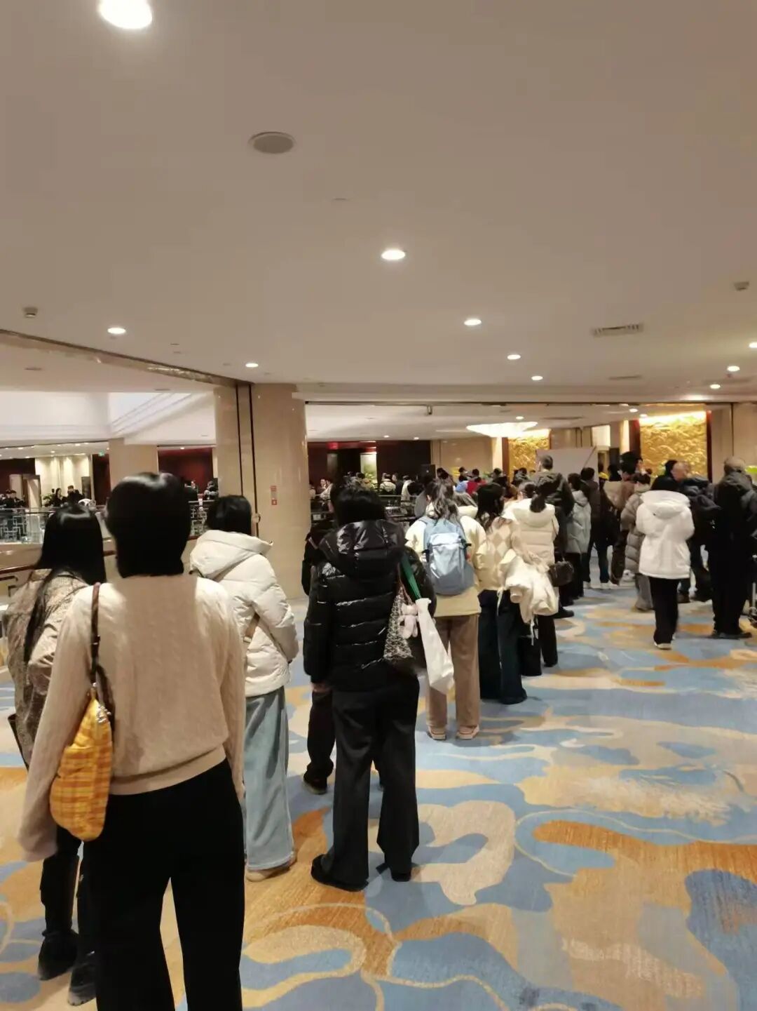 7点10分,3楼入场区已经排起了长队,企业代表们正在等待进场。现场工作人员、安检人员准备就位,摄像组已经开始工作。