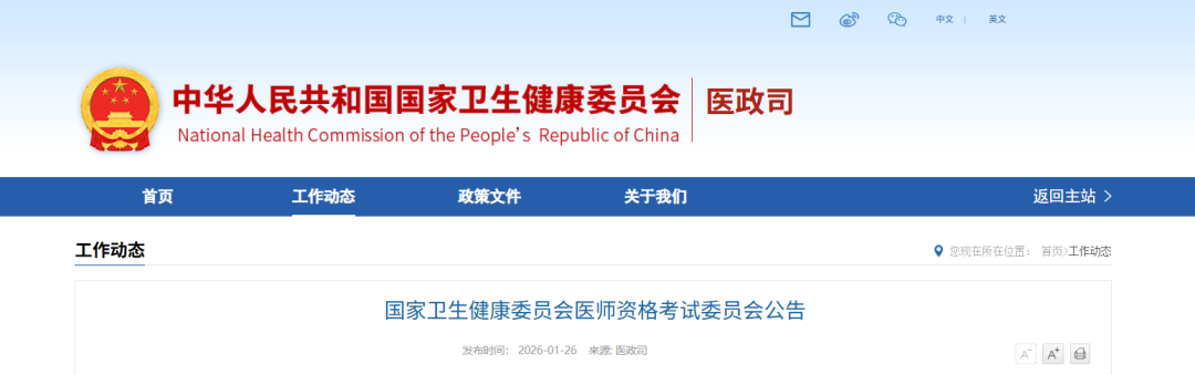 根据《中华人民共和国医师法》和《医师资格考试暂行办法》规定,2026年将在全国举行医师资格考试。临床、口腔、公共卫生类别和乡村全科执业助理医师医学人文部分启用修订后的考试大纲。现就有关事项公告如下: