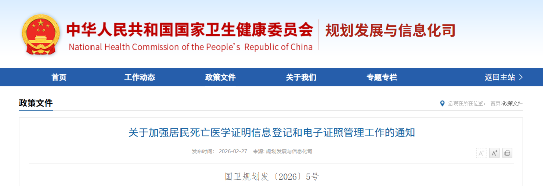 相关链接:《关于加强居民死亡医学证明信息登记和电子证照管理工作的通知》政策解读