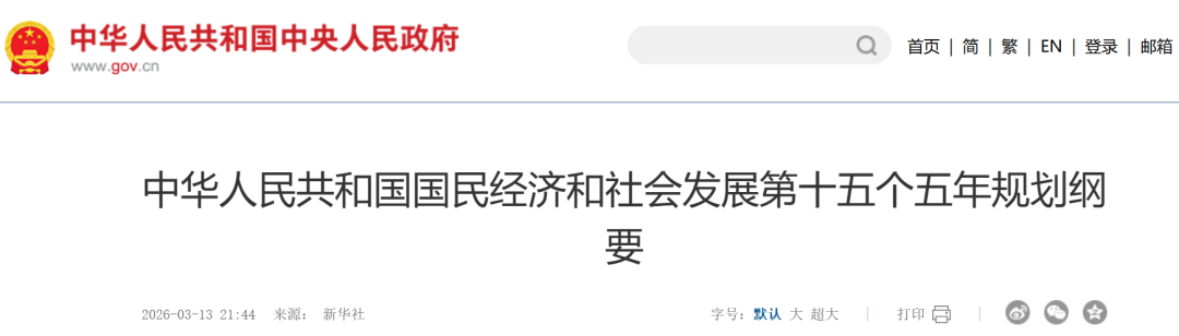 3月13日,新华社刊发了《中华人民共和国国民经济和社会发展第十五个五年规划纲要》。