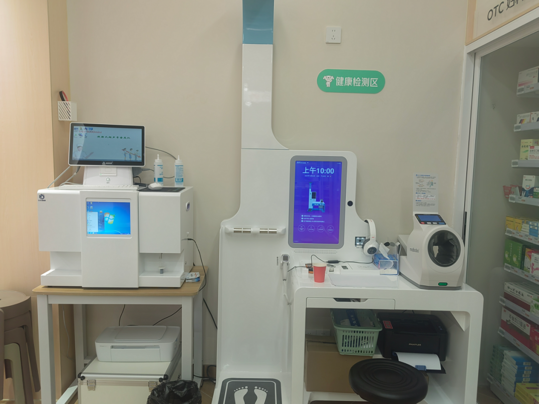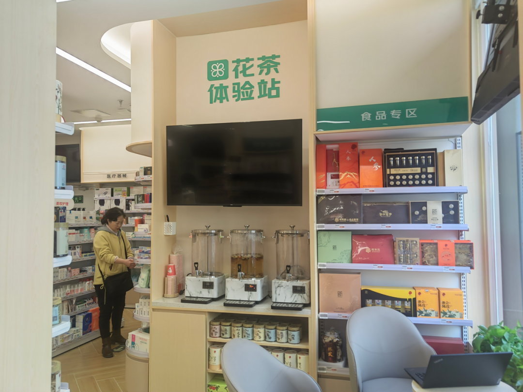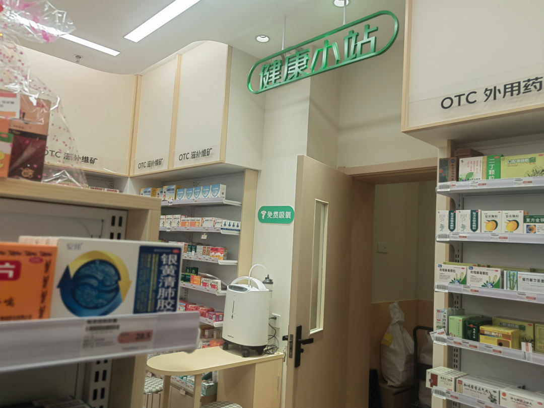 此外,店内还可提供“健康小站”便民服务。智能健康检测一体机能为进店消费者免费测量血压、血氧、视力等;患有呼吸道疾病、心肺功能不全的人,可进店免费吸氧;提供多种养生茶饮,供消费者免费品尝等便民服务,不时会有顾客上门体验。
