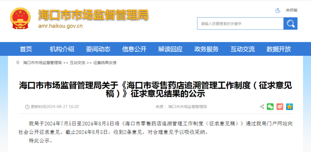 2024年8月,海南海口市发布《零售药店追溯管理工作制度(征求意见稿)》(以下简称《意见稿》),确保零售环节药品的安全性与可靠性,构建一个药品来源清晰可追溯、流向明确可追踪、责任明确可追责的全方位体系。