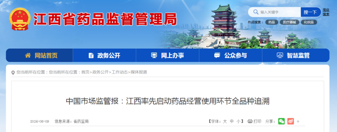 2024年8月,江西省药监局印发了《江西省药品经营使用环节全品种追溯体系建设工作方案》(以下简称《方案》),重在推广“一物一码、物码同追”的新药品追溯体系。