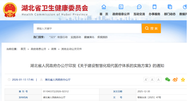 据湖北省卫生健康委消息,1月21日,湖北省举行建设智慧化现代医疗体系工作发布会,宣布启动实施覆盖全省的智慧化现代医疗体系建设。