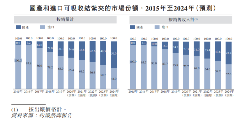 据灼识咨询报告,预计到2024年中国结扎夹市场规模将达到40.86亿元,其中高分子结扎夹市场规模28.33亿元,2020-2024年复合增长率达25.2%,可吸收结扎夹市场规模12.53亿元,2020-2024年复合增长率达29.2%