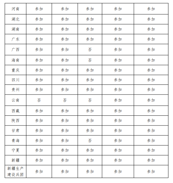 各省参与情况如下: