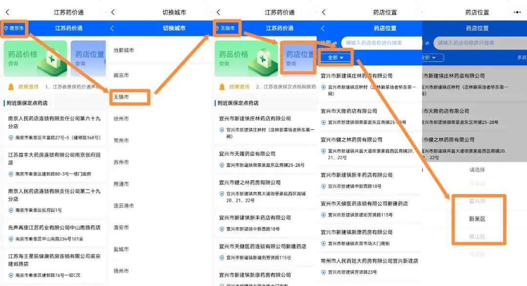 “江苏药价通”首批上线约3.2万家医保定点零售药店,覆盖全省13个设区市的所有县(市、区)。“江苏药价通”默认以手机定位所在设区市为当前查询区域范围,也可通过点击“切换城市”选择省内任一设区市或任一县(市、区)查询当地药店在售药品信息,同时药店信息查询还支持地图模式。无论身在何处,江苏全省药店药品价格信息等均可了然于胸。