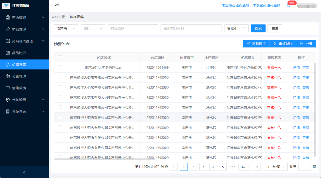 “江苏药价通”在管理后台还设有“价格预警”模块,常态化监测分析药品价格数据,对药店异常价格形成预警信息反馈药店,督促药店规范定价行为,引导药店价格回归合理。