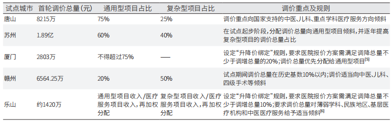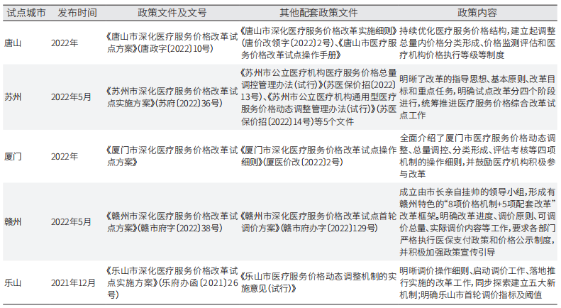 医疗服务价格改革是国家深化医药卫生体制改革的重点任务,是国家建立健全医疗服务价格管理体系的关键之举。2021年8月31日,国家医保局等八部门联合印发《深化医疗服务价格改革试点方案》(以下简称《试点方案》),旨在通过建立五项机制、推进四个配套措施、完善三个支撑体系,探索形成可复制可推广的医疗服务价格改革经验。同年12月,国家医保局选定唐山、苏州、厦门、赣州、乐山五个城市作为改革试点城市。截至目前,第一批启动的五个试点城市均已围绕“调不调”“调多少”“调什么”“怎么调”等核心问题成功制定并实施了深化医疗服务价格改革的规范性文件,其中涵盖了总量测算及统筹分配、分类项目的定价与调价以及价格监测考核等关键内容。那么,五个试点城市医疗服务价格改革成效如何?在调价过程中有何改革经验?本文尝试提供解答。 各地根据实际出台系列政策文件 继国家医保局发布《医疗服务价格改革试点操作指导手册(暂行)》(医保价采函〔2022〕42号)之后,各试点城市积极响应,紧密围绕本地实际情况,采取创新举措,相继出台了地方性改革试点方案,明确规划与设计医疗服务价格动态调整、总量调控、分类形成、评估考核等四项机制。为有效实施改革,各试点城市还出台了配套的实施细则和操作指南,为改革的顺利推进提供了明确的指引,确保改革措施落到实处(见表1)。 表1 试点城市医疗服务价格改革政策文件 注:数据主要来源于五个试点城市的医疗保障局、卫生健康委、人民政府等官方网站政策文件 试点城市探索实践具有地方特色的新举措 目前,五个试点城市已经按照新机制平稳执行两轮调价。各试点城市在遵循统一改革框架的基础上,积极探索并付诸实践了一系列具有地方特色的新方法和新举措。 1.总量调控机制 在《试点方案》中,构建更为可持续的价格管理总量调控机制的核心在于科学确定价格调整总量,并统筹平衡总量的分配。各试点城市所制定的改革试点方案均对调价总量的确定和分配作出明确规定。 在调价总量的确定上,五个试点城市均依据历史基数与增长系数的乘积确定。历史基数是基于全市公立医疗机构上年度医疗服务性收入设定,乐山还综合考量了公立医疗机构医疗服务总费用、医保基金支付总额等其他相关指标。 值得注意的是,关于医疗服务性收入的界定,各试点城市存在细微差异。如唐山与赣州在定义医疗服务性收入时,采取了医疗收入扣除药品、卫生材料、检查检验收入后所剩余的金额作为标准;而苏州、厦门与乐山,则选择将医疗收入扣除药品和卫生材料收入后所剩余的金额作为标准。在增长系数的确定上,五个城市均是综合考虑地区经济发展水平、人均可支配收入增长率、医药总费用规模和结构、公立医疗机构运行成本和管理绩效、患者跨区流动、新业态发展和医保基金筹资运行情况等指标来确定。在可调价总量上,五个试点城市因人口数量规模和经济发展水平不同而对可调价总量产生较大影响。 在总量分配上,大部分试点城市在调价初期均倾向于将调价总量优先分配于通用型项目(赣州例外)。赣州将约30%的总量用于其他类型项目,为其他医疗服务价格的调整预留了充足空间。此外,仅乐山给出了以历史收入占比作为总量分配依据的方案;厦门和乐山设定“升降价绑定”规则,避免调价“只升不降”,促使医疗机构合理定价(见表2)。 表2 试点城市医疗服务项目可调价总量及总量分配情况 注:数据主要来源于五个试点城市的医疗保障局、卫生健康委、人民政府等官方网站政策文件 2.分类形成机制 试点城市按照《试点方案》要求,对医疗服务项目进行了精细化的分类管理,实行不同的定价机制。 (1)通用型项目的确定、遴选和定价。在确定和遴选上,苏州根据当前医疗服务价格项目成熟程度和本市实际,确定诊察类、护理类和床位类等70个项目为第一批通用型医疗服务项目,厦门则率先采用量化评分法,从5个维度定量分析,根据得分高低确定调价的通用型项目。在定价上,各试点城市普遍采用政府定价模式,制定统一指导价和浮动标准,保持项目价格稳定。苏州市医保部门依托服务要素成本大数据分析,借鉴长三角地区经济和医疗水平相近城市的医疗服务价格水平,综合确定通用型项目基准价格,并探索同城同价策略。 (2)复杂型项目的确定、遴选和定价。在确定和遴选上,苏州将未列入通用型项目范围的均作为复杂型项目,按“聚类、轮动、必要、会商”的原则遴选调价项目;厦门建立医疗服务价格临床专家库,给予双高(高难度、高风险)的项目政策加分,确保评审结果更贴合临床实际;乐山在“平均报价标准化、优化政策性加分条件、创新经济性赋分方案”三方面创新,使对占用总量影响较小、符合政策倾斜要求的项目优先进入调价行列。在促使医疗机构合理定价上,五个试点城市多次举办相关会议,加强医疗服务价格调整培训,引导专业的医务人员参与到定调价工作中,与医保部门相向而行。厦门创新性增设调控分,医院报价涨幅与调控分负相关,建立两轮报价规则,控制医疗机构的调价步伐,引导医院主动优化报价项目价格。赣州创新多轮次复核报价规则,给予医疗机构和相关部门一定的调整空间,以便更准确地反映服务成本和价值。 3.动态调整机制 (1)通用型项目的动态调整机制