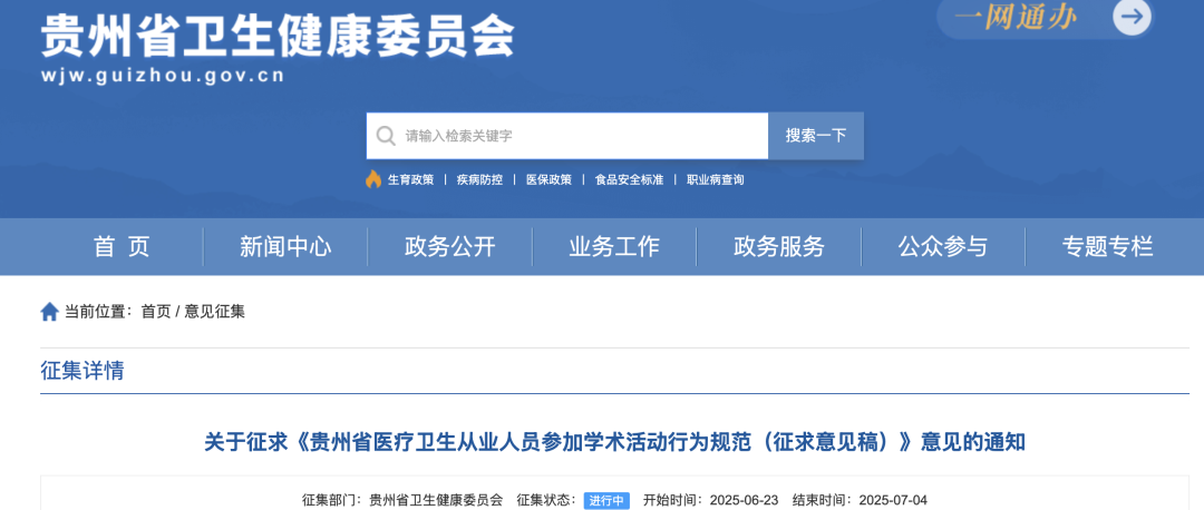 6月23日,贵州省卫健委发布《贵州省医疗卫生从业人员参加学术活动行为规范(征求意见稿)》,核心目的即进一步规范贵州省医疗卫生从业人员参加学术活动的行为。