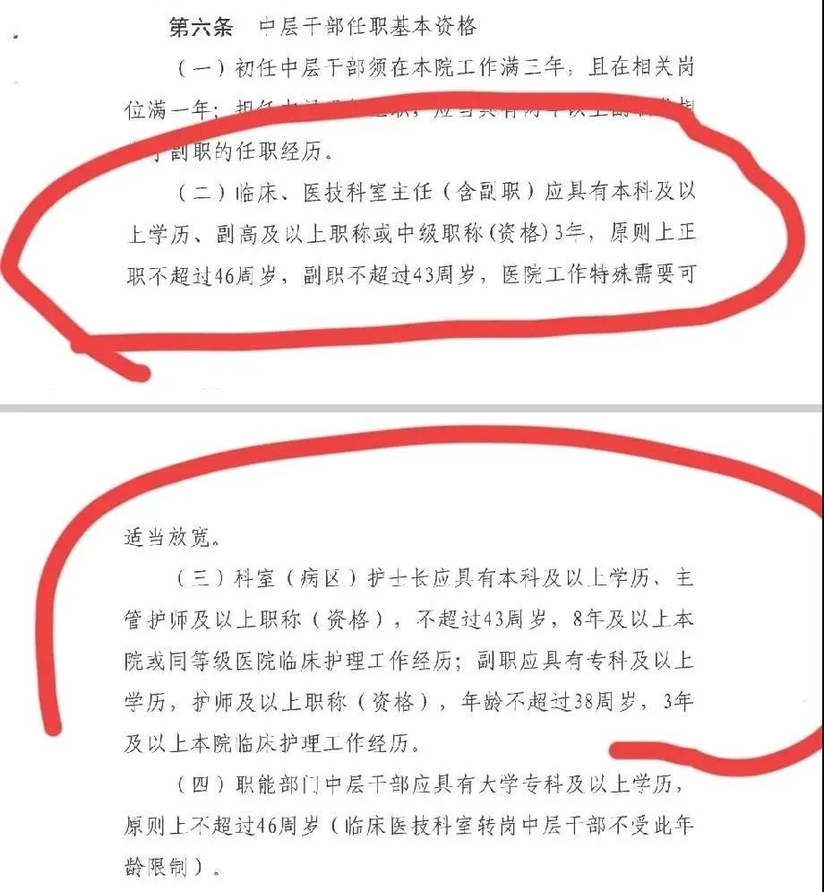 太重磅了,此例一开,必将对全国三级医院中层领导的任职产生重大影响,也将促使科主任越来越年轻化。