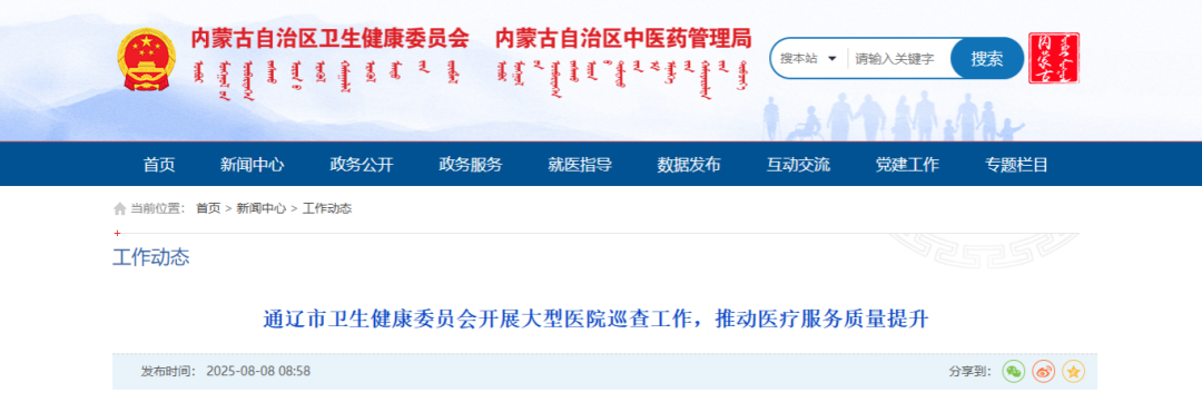 近日,据内蒙古自治区卫生健康委员会消息,通辽市启动2025年大型医院巡查工作,新一轮医院巡查工作拉开帷幕。 据了解,通辽市卫健委制定《通辽市大型医院巡查细则(2025年版)》,明确巡查重点、流程及责任分工。抽调多领域专家组建巡查组,通过实地检查、访谈、民主测评等形式开展巡查工作。 根据计划,本轮年度巡查范围为二级及以上医疗机构9家,巡查内容重点聚焦:公立医院党建、行业作风建设、运行管理、安全生产四部分。 下一步,市卫健委将对巡查结果进行总结分析,针对发现的问题督促医院及时整改,并建立长效监管机制,确保巡查工作取得实效。 值得注意的是,打响巡查行动发令枪的,并不止通辽市。近一个月以来,山东滕州、广东茂名、福建福清等多个地区密集展开医疗领域专项巡查行动,并把矛头直指医疗领域的不正之风和腐败问题。 从三甲到基层,医院违规被彻查 8月11日,广东省茂名市委巡察办发布一则《巡察公告》。 茂名市委组建5个巡察组,于2025年8月上旬至2025年11月上旬,对市审计局、市医保局、市人民医院、市中医院、市妇幼保健院等15个单位党组织开展常规巡察行动。 根据规定,茂名市委巡察组重点关注医疗领域的不正之风和腐败问题: 主要受理反映被巡察党组织领导班子及其成员、下一级党组织领导班子主要负责人和重点岗位领导干部问题,重点是关于违反政治纪律、组织纪律、廉洁纪律、群众纪律、工作纪律和生活纪律等方面的举报和反映。 值得注意的是,除了针对大型公立医院,各县级地区也展开基层医疗机构专项巡察行动: 8月8日,安徽省泗县派出4个巡察组,巡察驻点时间为40天左右,各巡察组于2025年8月上旬进驻,2025年9月下旬撤点。 4个巡察组分别进驻泗县卫健委、泗县计划生育协会、泗县第二人民医院、泗县大杨镇卫生院、泗县屏山镇卫生院、泗县草沟镇中心卫生院、泗县房屋征收管理服务中心、泗县人力资源和社会保障局等8家单位开展巡察,并召开了巡察工作动员会。 8月8日,甘肃东乡县共组建8个巡察组,于8月12日至11月20日,对县卫健局(各卫生院)、县人民医院、县妇幼保健院、县中西医结合医院开展医疗卫生领域巡查行动。 8月29日,福州市鼓楼区将于9月初开始组织开展2025年度基层医疗卫生机构现场巡查工作。 当前,医疗领域巡查工作,已覆盖三甲医院、妇幼保健机构及基层卫生院,重点聚焦医疗腐败、服务质量及“关键人物”作风问题。此外,上述地区还设立专门信访渠道受理群众举报,巡查周期多为2-3个月,预计此轮巡查风暴持续至11月底。 8月19日,中纪委发布题为《锲而不舍落实中央八项规定精神 从严从实 一抓到底》的头条文章。其中提到,中央纪委国家监委驻国家卫生健康委纪检监察组持续深化以案促改促治,推动构建纠治“四风”长效机制。该纪检监察组督促驻在部门联合相关部委制定出台《2025年纠正医药购销领域和医疗服务中不正之风工作要点》。工作中,坚持个案查处与系统施治同步推进,深挖发案单位和行业领域的监管漏洞,针对性制发纪检监察建议书和工作提示,并跟进监督落实,推动源头治理。 随着各地各级巡查启动,与医疗反腐行动形成合力,今年无疑将成为医疗反腐历程中的一个关键节点。 图文来源:各地卫健委 滕州日报 新华社 华医等