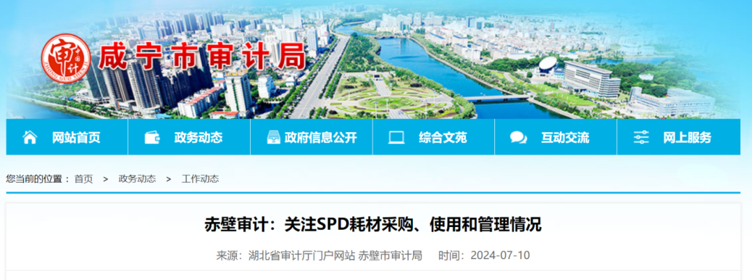 7月10日,赤壁市审计局在开展该市某三级医院领导人员经济责任审计中,同样强调:重点关注医院SPD医用耗材供应链管控情况。