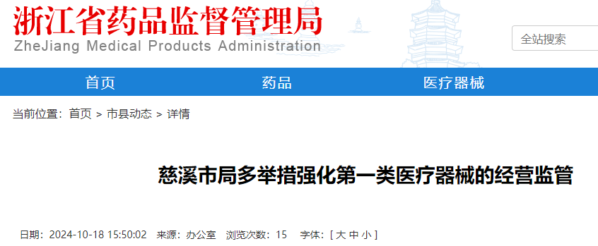 如据浙江省药监局10月18日报道,慈溪市局为进一步规范辖区内第一类医疗器械的经营,截至目前已出动检查人员728人次,检查经营企业352家,排查问题产品50余种,立案4起。