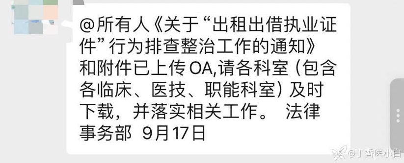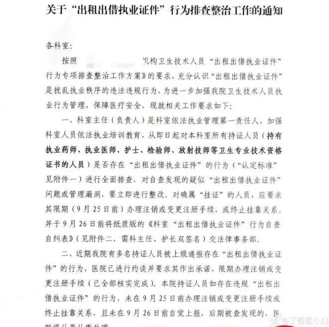 近日,有医务人员在丁香园论坛发文透露:医院通知,严查执医证「挂靠」行为,有多名医务人员已被约谈。