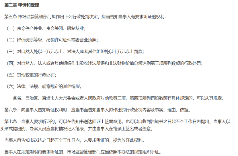 什么情况下,市场监管局会召开听证会?据2021年发布的《市场监督管理行政处罚听证办法》,下面几种情形,企业有听证的权利: