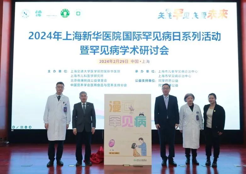 2024年2月29日,由上海交通大学医学院附属新华医院、上海市儿科医学研究所、北京病痛公益挑战基金会、中国营养学会医用食品与营养支持分会联合主办的“关注罕见 关爱未来”2024年上海新华医院国际罕见病日系列活动暨罕见病学术研讨会在上海成功举办。 国家市场总局特食司婴配注册处处长李晓瑜、三级调研员张剑,上海市卫生健康委员会医政医管处处长吴宏,上海市儿科医学研究所所长蔡威,上海交通大学医学院附属新华医院党委书记唐国瑶、副院长李劲松、副院长杜鹏、医务部主任盛旭俊,上海市儿童罕见病诊治中心主任顾学范,上海市儿科医学研究所副所长董艳,北京病痛挑战公益基金会秘书长马滔、副秘书长孙荣甲,阿里健康资深副总裁马立等领导嘉宾出席会议。 会议开幕式由上海交通大学医学院附属新华医院副院长李劲松主持。 会议开幕式上,国家市场总局特食司婴配注册处处长李晓瑜受周石平司长委托,对会议的成功召开表示祝贺,向致力于罕见病诊疗、研究、服务的工作者们致以真诚的敬意,她指出国家市场监督管理总局特殊食品司高度重视罕见病群体需求,回顾了过去一年围绕罕见病特医食品可及作出的诸多努力,将切实落实《特殊医学用途配方食品注册管理办法》,对罕见病类别、临床急需尚且未批准新类别等产品实施优先审评,鼓励产品研发,欢迎国内外产品积极申报,让中国罕见病患儿获得更多安全产品。 上海市卫生健康委员会医政医管处处长吴宏高度肯定上海新华医院、上海市儿科医学研究所多年来在罕见病领域的工作,提出了目前罕见病防治工作中面临的困难,罕见病的诊治不仅是医学问题,也是社会公共卫生问题。 上海交通大学医学院附属新华医院党委书记唐国瑶在致辞中介绍了上海新华医院和上海市儿科医学研究所在探索罕见病工作上的成效,希望打通基础和临床,打通研究和应用的产学研体系。 《漫画罕见病》新书发布,罕见病科普刻不容缓 鸟氨酸氨甲酰基转移酶缺乏症、甲基丙二酸血症、低磷性佝偻病……这一个个看起来陌生、读起来晦涩的疾病,其实离我们并不遥远。但罕见病依然存在公众知晓率低,确诊时间长,治疗可及性差,规范治疗率低等情况。因此,加强罕见病科普刻不容缓。 2024年国际罕见病日,由蔡威教授、张惠文教授牵头,上海交通大学医学院附属新华医院、上海市儿科医学研究所及北京病痛挑战公益基金会联合创作的科普书籍《漫画罕见病》正式发布。 本书聚焦发病率相对高、治疗效果较好的25种罕见病,以漫画的形式,生动形象地展现罕见病的典型症状、病因、检查、诊断、治疗,以及预防要点,系统地科普罕见病防治知识。上海交通大学医学院附属新华医院张惠文教授分享了创作初衷,并希望通过本书出版传播,不断提高社会大众对罕见病的关注与认识。本书由人民卫生出版社出版,并得到上海市科委科普项目资助。 关注遗传代谢类罕见病,展望罕见病类特医食品的未来 2023年,上海交通大学医学院附属新华医院、北京病痛挑战公益基金会等联合发布了国内首个罕见病类特医食品报告《2023年罕见病类特殊医学用途配方食品可及性报告》,关注急需特医食品的遗传代谢类罕见病,了解罕见病特医食品的重要性。 会上,北京病痛挑战公益基金会、上海市儿科医学研究所联合发起的遗传代谢类罕见病关爱合作项目正式签约启动。本项目的实施,将进一步推动罕见病医务社会工作人才建设,衔接病痛挑战基金会的罕见病综合服务体系,为遗传代谢类罕见病患儿提供一站式全生命周期诊疗和关怀服务,提高罕见病类特医食品可及。 随后,上海交通大学医学院附属新华医院、上海市儿科医学研究所、上海市儿童罕见病诊治中心、北京病痛挑战公益基金会、中国营养学会医用食品与营养支持分会共同启动了《罕见病类特殊医学用途配方食品的应用与展望:基于真实世界数据》项目,深入地了解罕见病类特殊医学用途配方食品的应用前景。上海交通大学医学院附属新华医院邱文娟教授详细阐述了项目背景、目标和研究方法,项目得到阿里巴巴公益、阿里健康公益支持。 罕见病特医食品应用与展望研讨会 罕见病特医食品应用与展望研讨会由上海交通大学医学院附属新华医院韩连书教授、张惠文教授和冯一教授共同主持。 上海市儿科医学研究所所长蔡威教授介绍了中国遗传代谢病特医食品现状、困境与对策。我国特医食品相关政策法规不断完善,但依然面临着注册成本高、医院渠道不通、国内产业链不完整等挑战。截止到2024年2月28日,已有175种特医食品获批,但仅有3种罕见病特医食品。蔡威教授表示特医食品将作为我国国民健康中的重要一环,其重要性愈加凸显。 苯丙酮尿症(PKU)是遗传代谢类罕见病里第一个能够治疗的疾病,也是使用特医食品进行治疗的第一个疾病。上海市儿童罕见病诊治中心主任顾学范教授回顾了人类社会对于PKU的认识和发展,从零的突破到实现早筛查早诊断早治疗,临床医生可以从中学习到宝贵的经验,有助于整个遗传代谢类罕见病的诊断和筛查。 PKU早期筛查治疗逐步完善的同时,长期疾病管理也格外重要。对于目前中国青少年PKU诊治现状,上海交通大学医学院附属新华医院邱文娟教授也从低苯丙氨酸饮食、心理健康等方面进行介绍,建议在患者、父母和医生的共